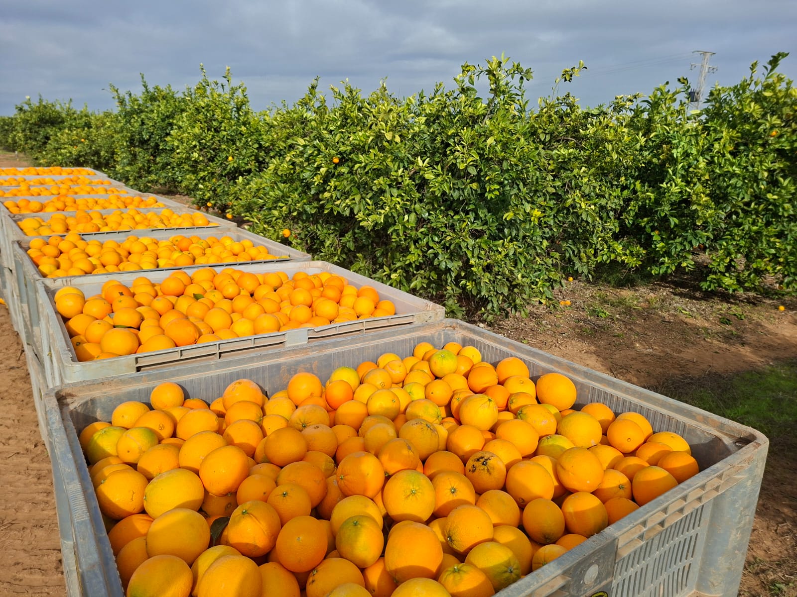 Die von Hand geernteten Orangen werden in Kisten auf den Feldern in Andalusien gesammelt. Diese Orangen werden unter der Marke Don Vital produziert und garantieren Frische und Qualität direkt vom Erzeuger.